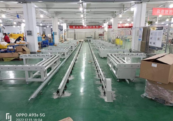 ?  標(biāo)準(zhǔn)流水線總裝工位—調(diào)試工位采用滾筒式流水線,不設(shè)分支結(jié)構(gòu);各工位間設(shè)定有機(jī)械限位;