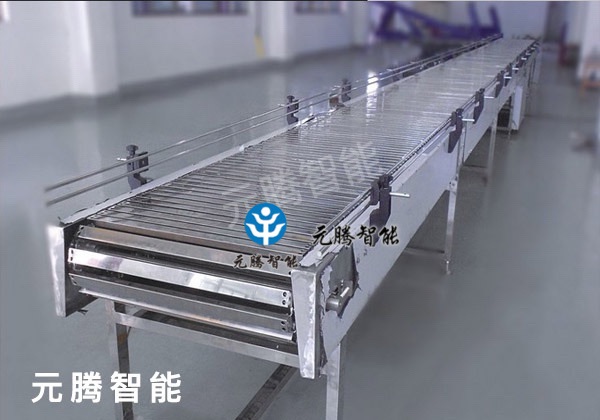 板鏈輸送機(jī)以標(biāo)準(zhǔn)鏈板為承載面,由馬達(dá)減速機(jī)為動(dòng)力傳動(dòng),運(yùn)行在專用導(dǎo)軌中,根據(jù)工藝流程不同,頂板鏈分為轉(zhuǎn)彎及直線型。