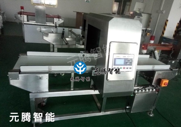 如果包裝物本身含有金屬或者最后的包裝太大無(wú)法得到很好的探測(cè)靈敏度,這時(shí),就要將金屬檢測(cè)儀安裝在包裝機(jī)之前。